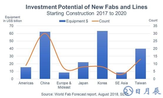 根據(jù)預(yù)測(cè)顯示,由于新晶圓廠陸續(xù)啟動(dòng),設(shè)備需求因而大幅增加,投資在晶圓廠技術(shù)、生產(chǎn)制程,及額外的產(chǎn)能資本額也將有所增長(zhǎng)。全球晶圓廠預(yù)測(cè)報(bào)告目前共追蹤78座已經(jīng)或即將在2017年到2020年間動(dòng)工的新設(shè)晶圓廠和產(chǎn)線(xiàn)(機(jī)率各異),相關(guān)晶圓廠設(shè)備需求最終將超過(guò)2,200億美元。這段期間,這些晶圓廠和產(chǎn)線(xiàn)的建廠投資可望達(dá)530億美元。