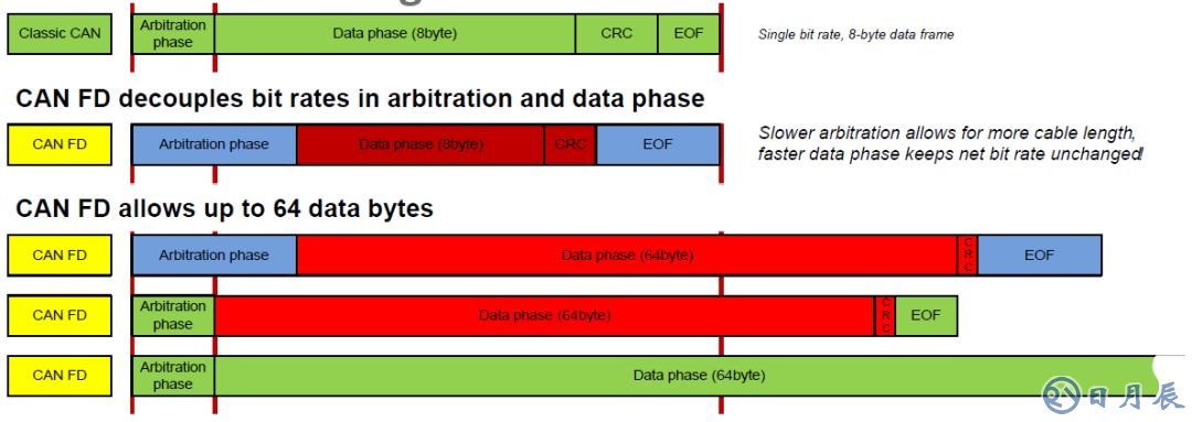 近年來,隨著汽車電子節(jié)點數(shù)量不斷增加,數(shù)據(jù)量不斷提升,傳統(tǒng)高速CAN 1Mbps的帶寬已經(jīng)不足以滿足日益增長的帶寬需求,而如果全部直接使用Flexray或者Ethernet 對于車廠而言不僅具有技術(shù)難度,其成本也是當(dāng)前消費者所無法接受的,所以市場迫切需求一種能夠向下兼容傳統(tǒng)高速CAN,同時又能將帶寬進(jìn)一步提升的網(wǎng)絡(luò)產(chǎn)品,CAN FD的就是這種背景下的產(chǎn)物。