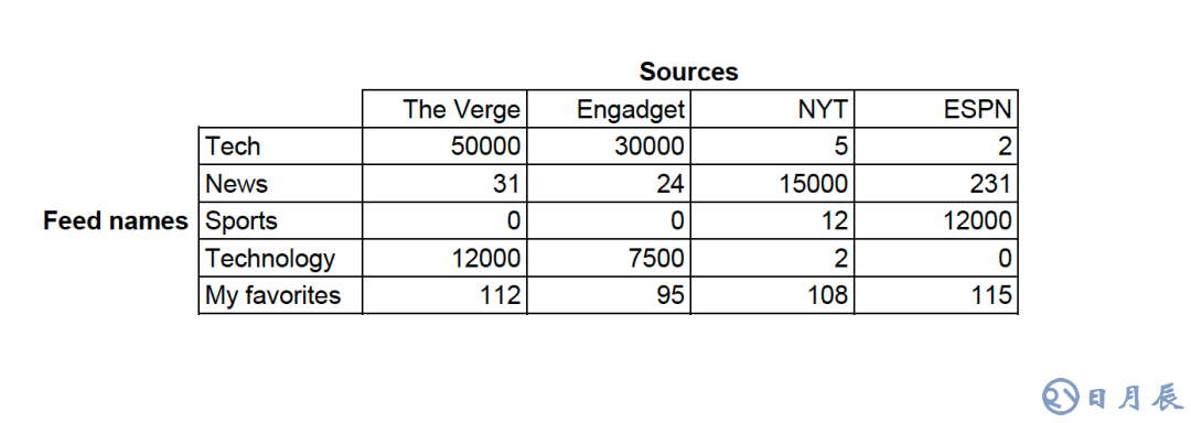 想要理解我是如何訓(xùn)練模型識別主題的,可以想像一個矩陣或者表格,其中有關(guān)于主題和信息源的數(shù)據(jù)。