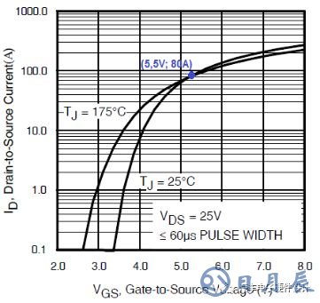 圖5:傳輸特性(IRF 3305)