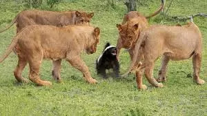 中間那只就是蜜獾,原圖描述為“蜜獾vs獅群”。來源:YouTube