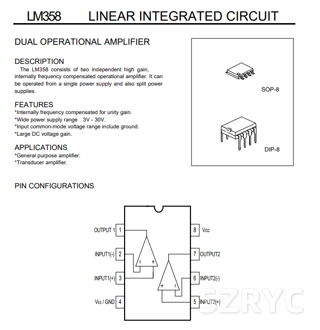 LM358是雙運(yùn)算放大器。內(nèi)部包括有兩個獨(dú)立的、高增益、內(nèi)部頻率補(bǔ)償?shù)倪\(yùn)算放大器,適合于電源電壓范圍很寬的單電源使用,也適用于雙電源工作模式,在推薦的工作條件下,電源電流與電源電壓無關(guān)。它的使用范圍包括傳感放大器、直流增益模塊和其他所有可用單電源供電的使用運(yùn)算放大器的場合。