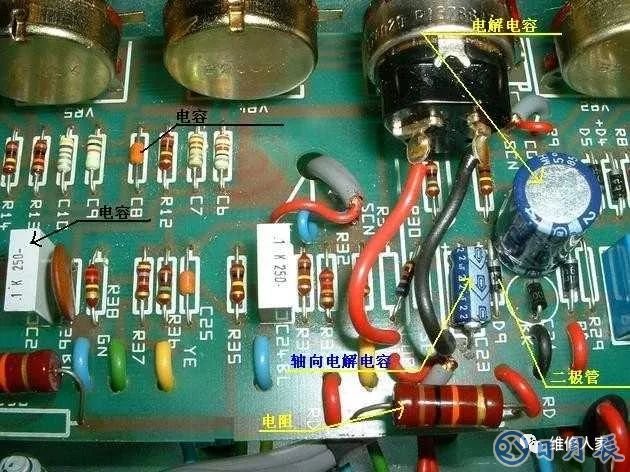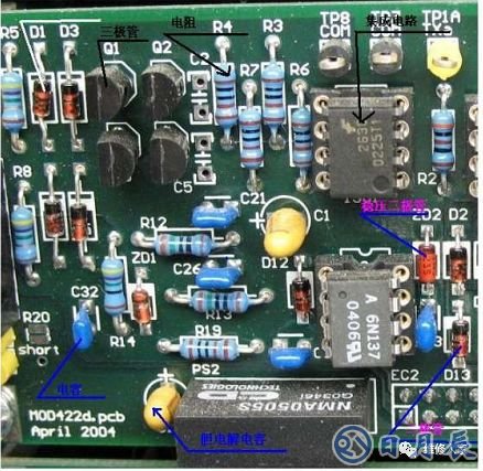 對(duì)于元件識(shí)別可以看印字型號(hào)來區(qū)別,對(duì)于元件上沒有字符的器件也可分析電路原理或用萬用表測(cè)量元件參數(shù)進(jìn)行判斷。判斷元件類型并非一朝一夕就能學(xué)會(huì)的,這需要多年積累的經(jīng)驗(yàn)來認(rèn)識(shí)。