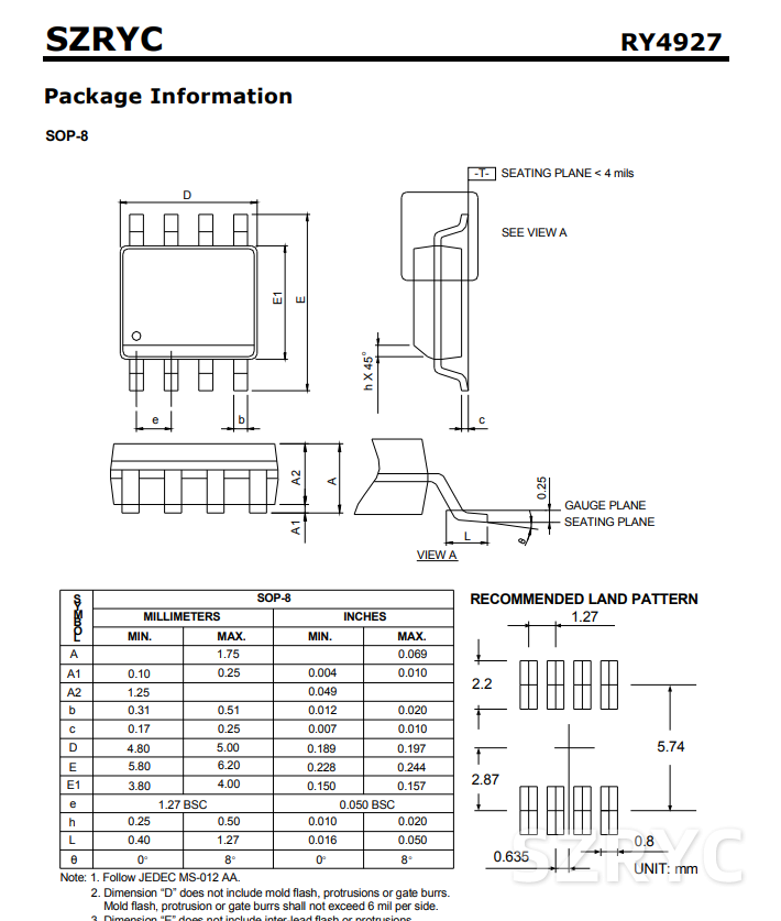 RY4927 雙P管,低內(nèi)阻,SOP封裝MOS管,參數(shù):-30V/-30V, 15MR內(nèi)阻, SOP-8封裝
