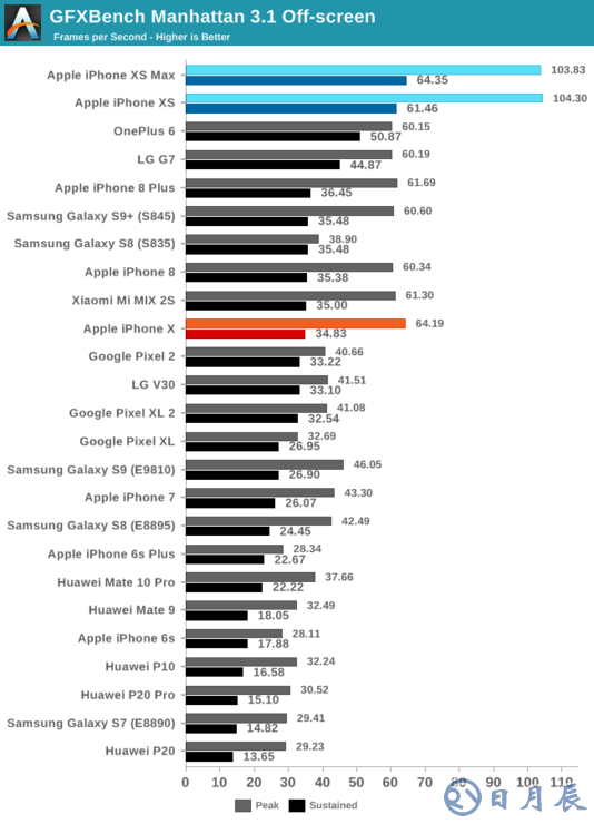 在曼哈頓3.1中, iPhone XS的性能比iPhone X高出75%。這里的改進(jìn)不僅要?dú)w功于增加的核心,還有顯存壓縮技術(shù)降低RAM功耗的功勞。