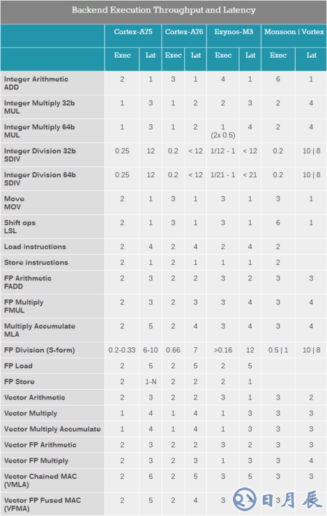 Vortex核心與Monsoon核心看起來非常相似,整數(shù)除法和浮點(diǎn)除法的執(zhí)行延遲都減少了2個(gè)周期,浮點(diǎn)吞吐量則是翻了一倍。