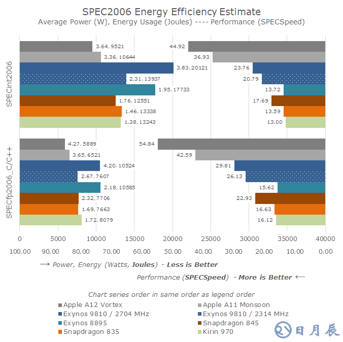 這也讓我們對(duì)今年發(fā)布的三星M3 架構(gòu)有了更好的認(rèn)知,即只有當(dāng)功耗在可控范圍內(nèi)時(shí),更高的功耗才能帶來更高的性能(Exynos 9810的功耗是蘋果上代A11的2倍,但其性能卻只有A11的一半)。