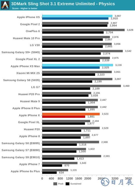 在3DMark物理測(cè)試中,iPhone XS和A12相比去年的iPhone X取得了很大的進(jìn)步。3DMark物理測(cè)試此前一直對(duì)蘋果的處理器不夠友好,這個(gè)境遇在A11上才得到了一定的緩解。A12整體上再次提高了SoC的性能和能耗比,最終在本次測(cè)試中勝過了驍龍845。