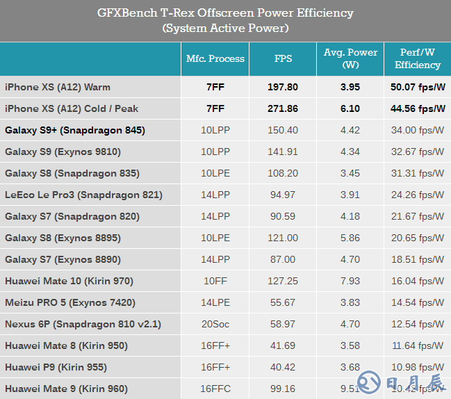 功耗方面,由于沒有時(shí)間在各種設(shè)備上測(cè)量Aztec,所以仍然依賴標(biāo)準(zhǔn)的曼哈頓3.1和T-Rex測(cè)試數(shù)據(jù)。