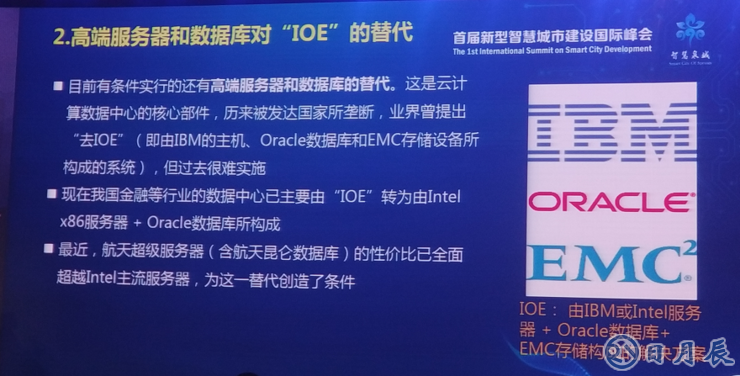 第二個(gè)替代比較重要,在基礎(chǔ)設(shè)施來講,信息技術(shù)設(shè)施數(shù)據(jù)中心很重要,IOE很難替代,國際上也在研究。甲骨文的數(shù)據(jù)很難記載,是壟斷的。在數(shù)據(jù)處理特別是事務(wù)型的,事務(wù)型的數(shù)據(jù)如銀行的。