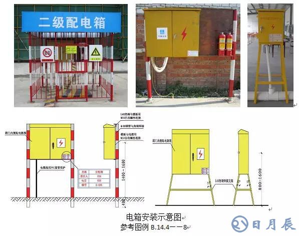 3、配電箱、開關(guān)箱應(yīng)裝設(shè)端正、牢固;固定式配電箱、開關(guān)箱的中心點(diǎn)與地面的垂直距離應(yīng)為1.4~1.6m;移動(dòng)式配電箱、開關(guān)箱應(yīng)裝設(shè)在堅(jiān)固的支架上,其中心點(diǎn)與地面的垂直距離宜為0.8~1.6m。(JGJ46-2005第8.1.8條)