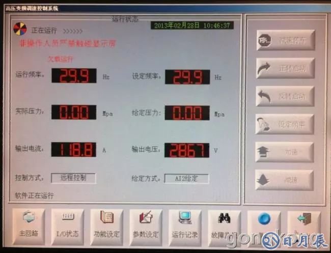 高壓變頻器已經(jīng)運行;另外重新給控制柜送電,發(fā)現(xiàn)這個高壓變頻器的觸摸屏面板,其實不是咱們常見的普通觸摸屏,原因它的操作系統(tǒng)不是WINCE,而是WINXP專業(yè)版的。