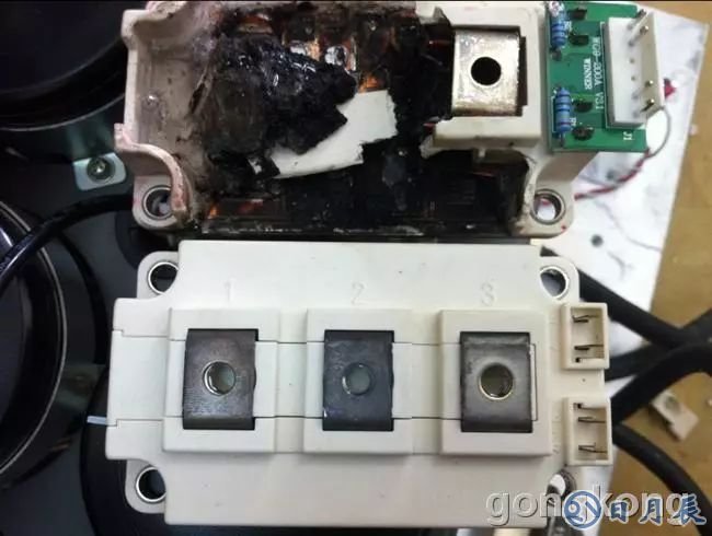 IGBT是2個并聯(lián)的,按道理是2個會同時壞的,開始也以為是控制板和驅(qū)動引起的,但是控制板舊的可以繼續(xù)使用,另一個IGBT現(xiàn)在繼續(xù)運行;炸的IGBT上的觸發(fā)上面的小控制板,拆下來換到新的IGBT上,還報故障的;所以我覺得就是那小板引起的,小板看就是電阻啊。進線的快熔燒壞了的,快熔也換了。所以覺得這個快熔起的保護作用還可以。