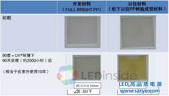 耐光性加速試驗(yàn)結(jié)果(照片出自松下新聞發(fā)布資料)