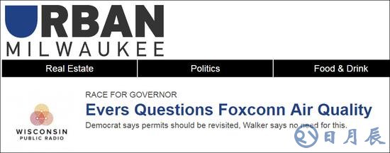 《州長之爭:埃弗斯質(zhì)疑富士康空氣排放》:“民主黨籍州長候選人說排放許可應(yīng)該被重審,沃克說沒必要”。報道截圖