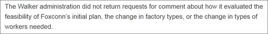但州政府仍未向媒體解釋,當初是如何對富士康最初計劃的可行性進行評估的。