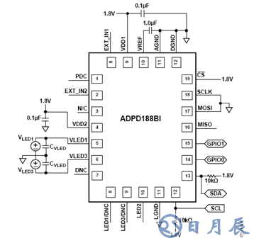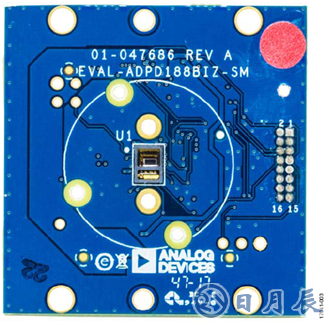 用于UL測試的測試硬件為EVAL-ADPD188BI-SK評估板,通過EVAL-ADPDUCZ微控制器板控制。圖2為EVAL-ADPD188BI-SK電路的原理示意圖,圖3為該板的照片。