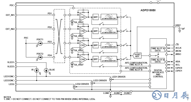 ADPD188BI光學(xué)模塊進行了表1中所示的測試。