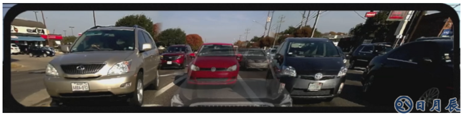 因為攝像頭位于車鏡上,所以側(cè)視鏡有所不同。側(cè)視鏡仍然用于查看,但是通常而言,當駕駛員開啟方向燈或倒車時,其攝像頭才會工作。在轉(zhuǎn)彎或變道期間,攝像頭向儀表板上的信息娛樂顯示屏輸出視頻傳送,并可能顯示與側(cè)視鏡本身稍有不同的角度,如圖2所示。