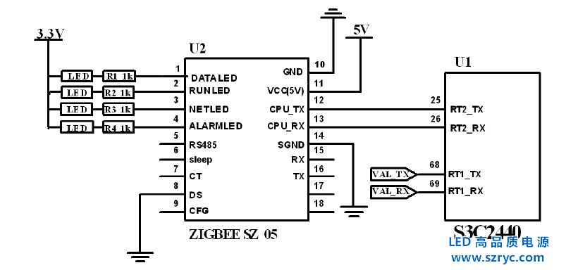 圖4 ZigBee 無線模塊與主控制電路連接圖。
