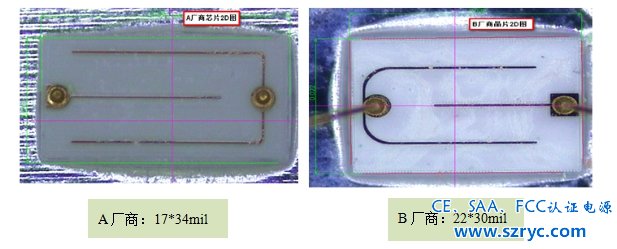 從晶片2D圖可以看出A廠商使用的晶片尺寸大于B廠商,A廠商芯片的最大承受能力會大于B廠商,即在過電流操作的情況下,A廠商的的光衰會小于B廠商(2.2.4的老化試驗也證明了這點)。