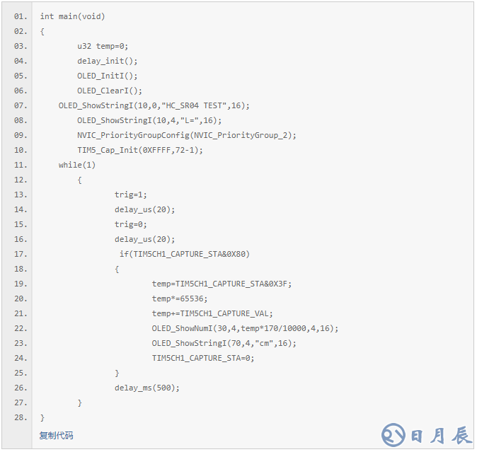 通過(guò)對(duì)片內(nèi)計(jì)時(shí)器TIM5的使用,超聲波測(cè)距的主程序如下:
