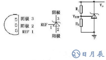 TL431是由德州儀器生產(chǎn)的可控精密穩(wěn)壓源,實(shí)物如圖2-3所示。它的輸出電壓用兩個(gè)電阻就可以任意的設(shè)置到從2.5V到36V范圍內(nèi)的任何值。該器件的典型動(dòng)態(tài)阻抗為0.2Ω,在很多應(yīng)用中用它代替穩(wěn)壓二極管,例如,數(shù)字電壓表,運(yùn)放電路,可調(diào)壓電源,開(kāi)關(guān)電源等。圖2-2所示為T(mén)L431引腳排列與使用連線圖。