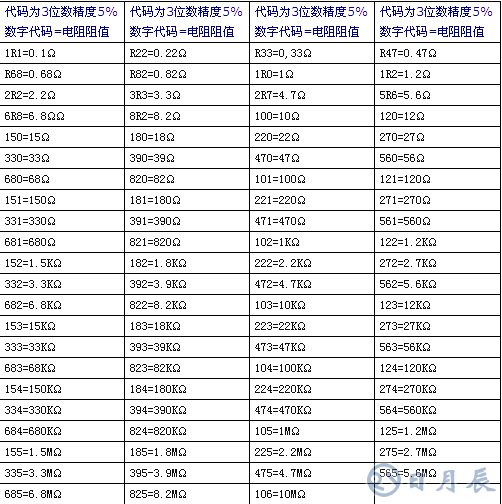 5%和1%精度的貼片電阻標(biāo)稱阻值表及表示法