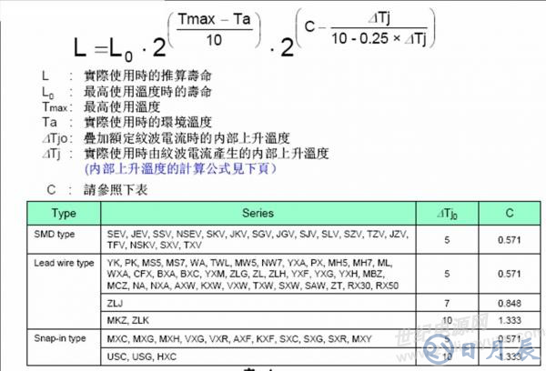 1. 工作溫度不能超 Tmax、ripple 電流不能超最大可接受 ripple 電流、電壓不能超 Vmax,只要有一項超了,就不適合用公式計算壽命,即使算過了也沒有意義。