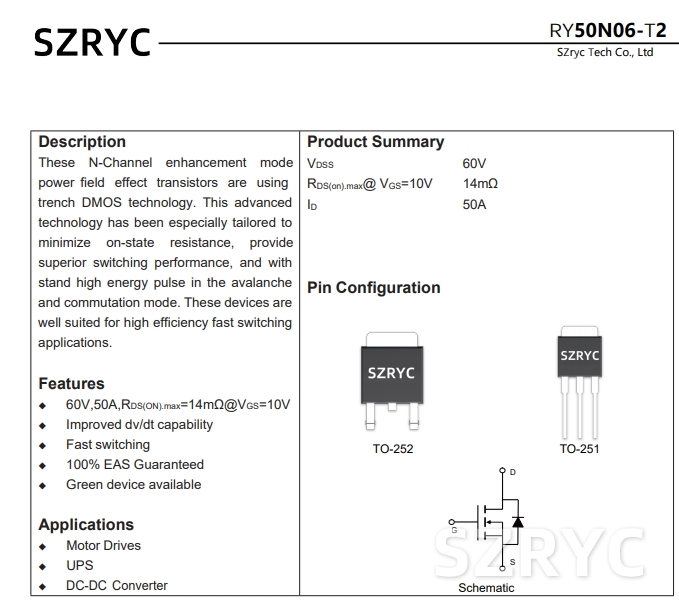 我公司的RY50N06規(guī)格參數(shù)如下,