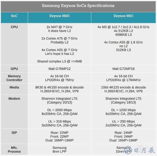 ▲Exynos9820與Exynos9810參數(shù)對比,數(shù)據(jù)來源:AnandTech