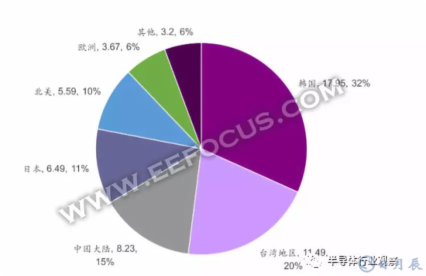 圖:2017全球半導體設(shè)備市場規(guī)模(單位:十億美元)