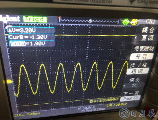 用示波器讀取PN512信號(hào)波形,正弦波非常好看,波形幅值是可以調(diào)節(jié)的,大家可以通過調(diào)節(jié)電路中的C3 C4 C6 C7來調(diào)節(jié)波形,正常情況下波形可以達(dá)到2V就可以了,幅值越小讀取的距離越近,但是幅值太大的話容易讀取不穩(wěn)定,具體大家可以自己調(diào)節(jié)一下。