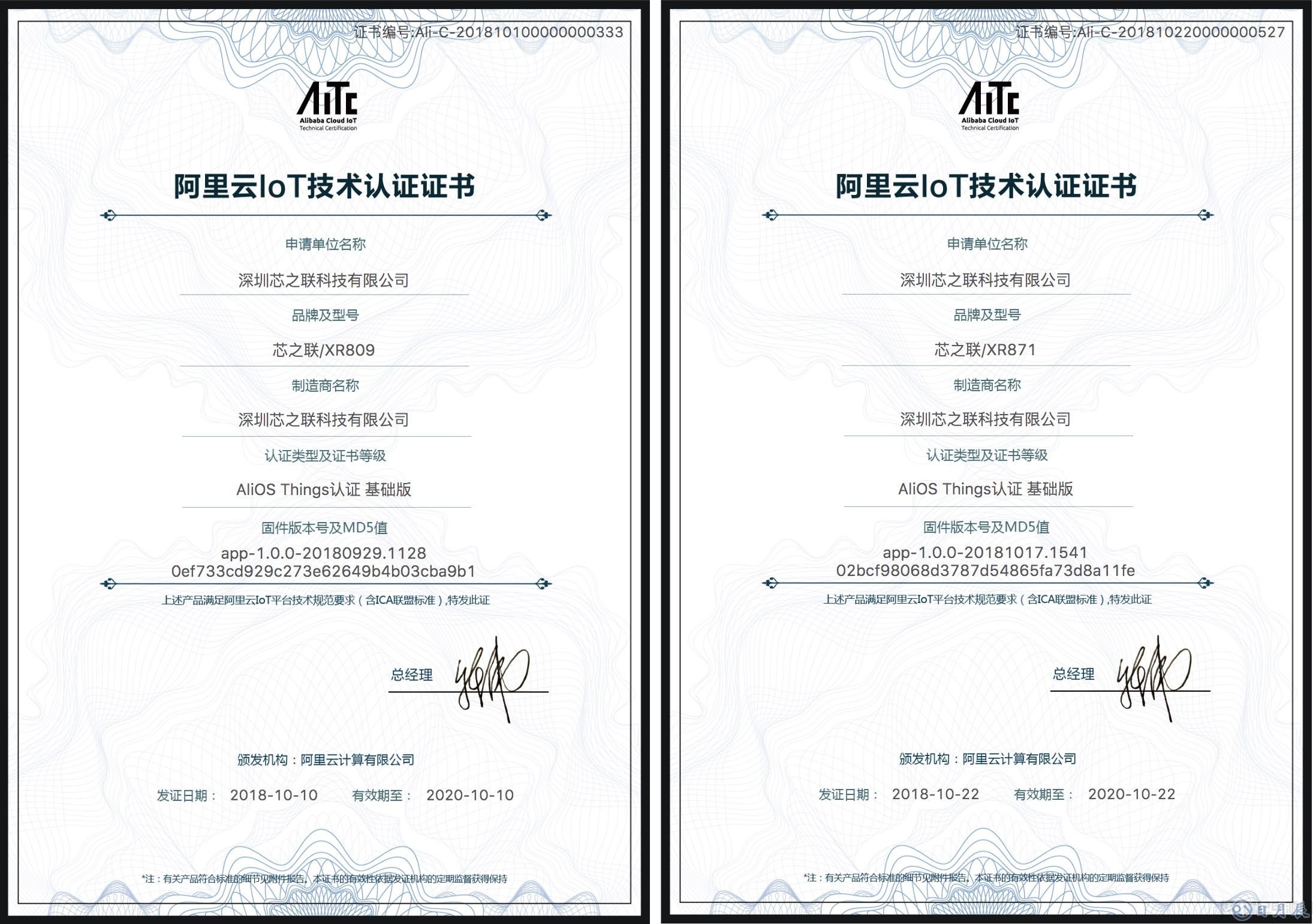 芯之聯(lián)自成立以來(lái),先后推出了WiFi連接芯片XR819,低功耗無(wú)線MCU芯片XR871,WiFi+BT二合一芯片XR829,IOT WiFi芯片XR809以及高性能32bit MCU XR32F4,其中XR809和XR871均已通過(guò)阿里云loT技術(shù)認(rèn)證。