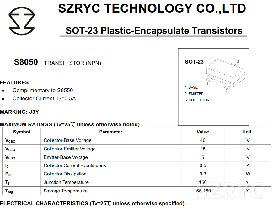 S8050是一款常用的NPN型雙極晶體三極管,廣泛應(yīng)用于各種電子電路中。以下是S8050三極管的一些主要參數(shù):