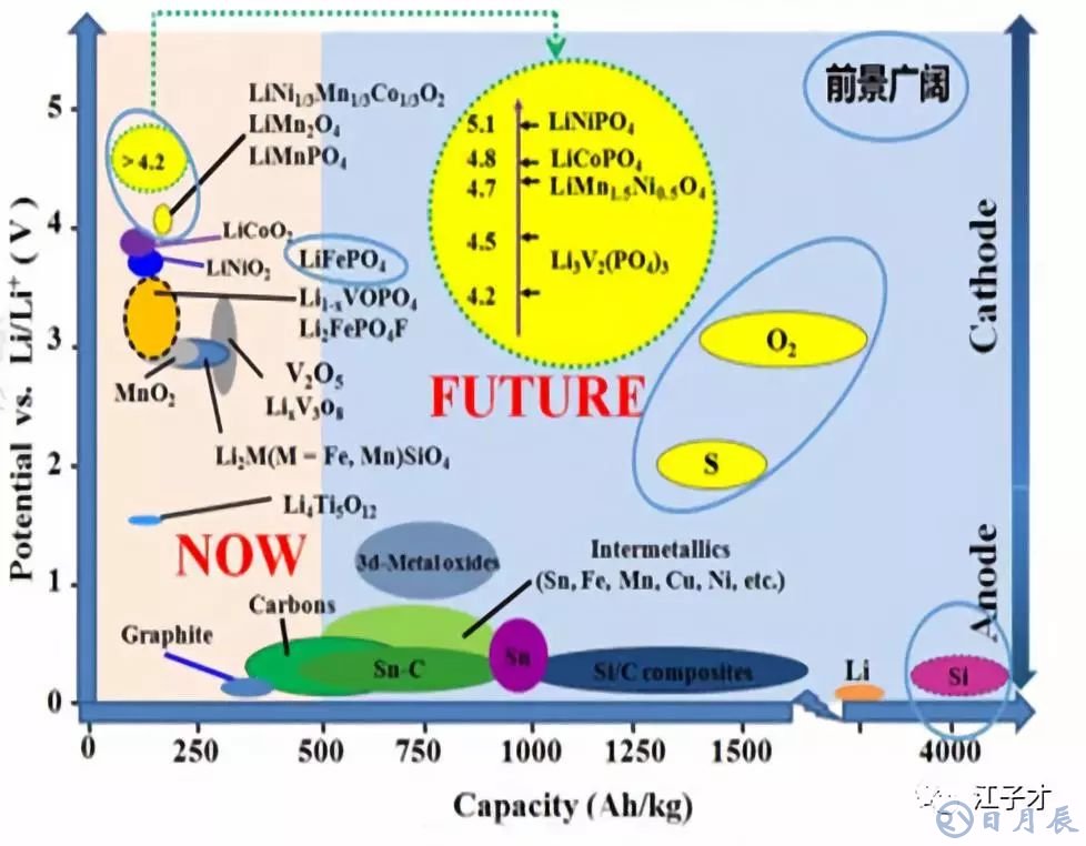 金屬鋰,是密度最小的金屬之一了,標(biāo)準(zhǔn)電極電位-3.04V,理論比容量3860mAh/g,從這個(gè)數(shù)據(jù)看,僅次于硅的4200mAh/g了。應(yīng)用領(lǐng)域鋰硫電池(2600wh/kg)、鋰空氣電池(11680wh/kg)等。