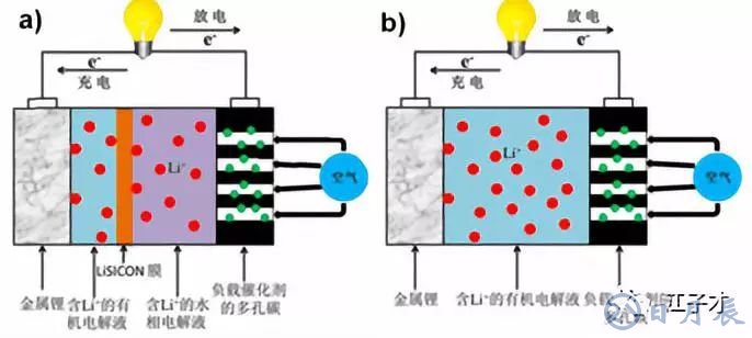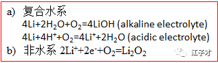 鋰空氣電池,結(jié)構(gòu)示意圖和反應(yīng)方程式如下,鋰空氣電池具有很高的能量密度(11680wh/kg),接近燃油的能量密度,環(huán)境友好,反應(yīng)生成物為水。