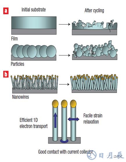 納米硅,通過制備成納米線,使得所有的硅得到利用,并預(yù)留膨脹空間,可有效改善循環(huán)性能。但是該方法成本較高,工藝制程復(fù)雜,制備難度較大。