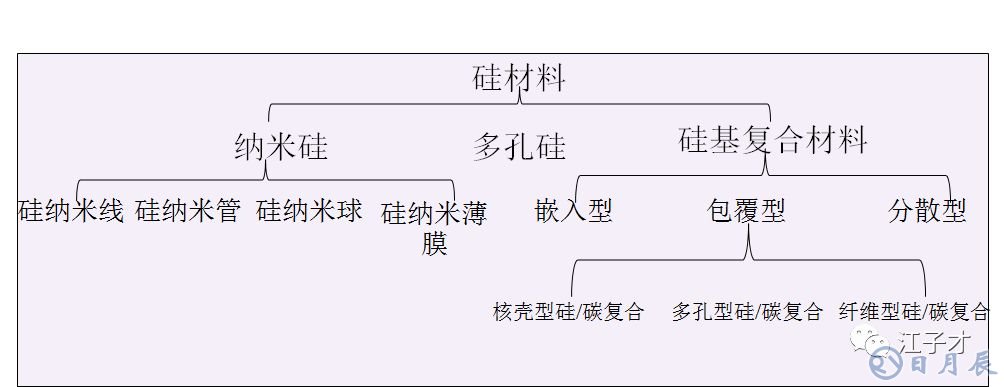 也正是因?yàn)樗?00%的體積膨脹,限制了現(xiàn)階段的商業(yè)化應(yīng)用。都說解決問題的方法總是伴隨著問題的產(chǎn)生而產(chǎn)生,現(xiàn)在研究的解決硅充放電膨脹的方法有納米硅、多孔硅、硅基復(fù)合材料。利用復(fù)合材料各組分之間的協(xié)同效應(yīng),達(dá)到優(yōu)勢互補(bǔ)的目的,其中硅、碳復(fù)合材料就是一個(gè)重要的研究方向,包括包覆型、嵌入型和分散型。