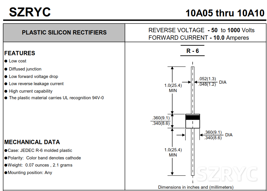 10A10是一種常見(jiàn)的整流二極管,其主要特性如下: