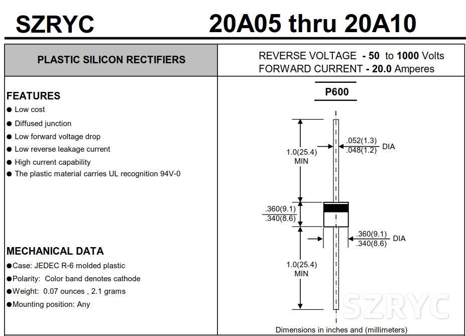 20A10是一種常見的整流二極管,其主要特性如下: