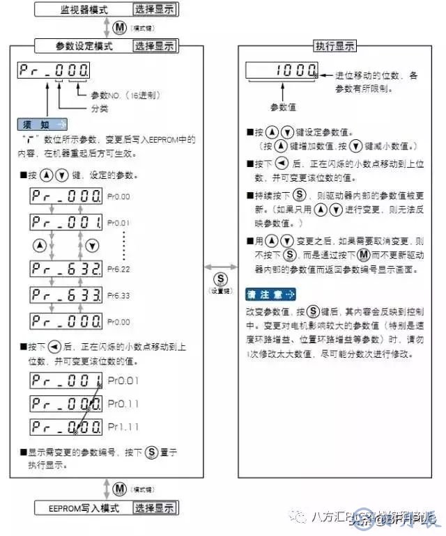 Pr0.00:伺服旋轉(zhuǎn)方向切換。常常有這樣的情形,伺服驅(qū)動(dòng)需要調(diào)換旋轉(zhuǎn)方向,只需要將Pr0.00中的值由“1”改為“0”,或由“0”改為“1”(出廠值是“1”)。