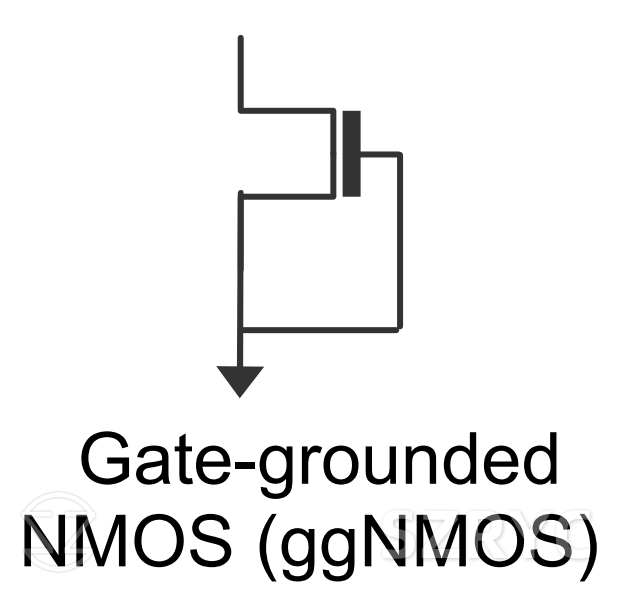 GGNMOS 是一種常用的 ESD 防護結構,其基本工作原理是,當輸入電壓超過一定的閾值時,NMOS 的柵極和源極之間會形成一個擊穿通道,將過高的電壓引導到地線,從而保護內部電路。