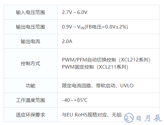 輸入電壓范圍在2.7V~6.0V之間。輸出電壓可用電阻從0.9V任意設(shè)定。XCL211的頻率被固定,可以抑制輸出紋波。XCL212通過在輕負(fù)載時(shí)降低工作頻率,實(shí)現(xiàn)了從輕負(fù)載到重負(fù)載整個(gè)區(qū)域內(nèi)的高效率。軟啟動(dòng)時(shí)間設(shè)定為1ms(TYP.),可以使輸出電壓高速啟動(dòng)。限定電流功能被設(shè)定為4.0A(TYP.)。內(nèi)置了UVLO(Under VoltageLock Out)功能,當(dāng)輸入電壓在2.4V(TYP.)以下時(shí),強(qiáng)制停止內(nèi)部驅(qū)動(dòng)晶體管工作。當(dāng)CE=Low時(shí),利用CL放電功能將CL(負(fù)載電容)中的電荷放電,將消耗電流抑制在1.0μA以下。