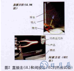 眾所周知,曾經(jīng)有多種方法來(lái)評(píng)估材料的可燃性和耐火性,包括直接和間接火焰燃燒試驗(yàn)方法。UL94規(guī)范是采用直接火焰燃燒試驗(yàn)方法的一個(gè)示例。這種已被長(zhǎng)期采用的方法是在受控條件下,對(duì)垂直或水平安裝的樣本直接施加火焰。而間接火焰燃燒方法則是對(duì)樣品施加熱源。灼熱絲試驗(yàn)是間接火焰燃燒方法的一個(gè)示例。使用這些方法得到的試驗(yàn)結(jié)果可用來(lái)比較材料的阻燃、自動(dòng)熄滅(如果起燃)和燃燒形成的滴落物不引起火焰蔓延的可能性。為了更好地理解直接和間接方法的區(qū)別,可參照?qǐng)D2。