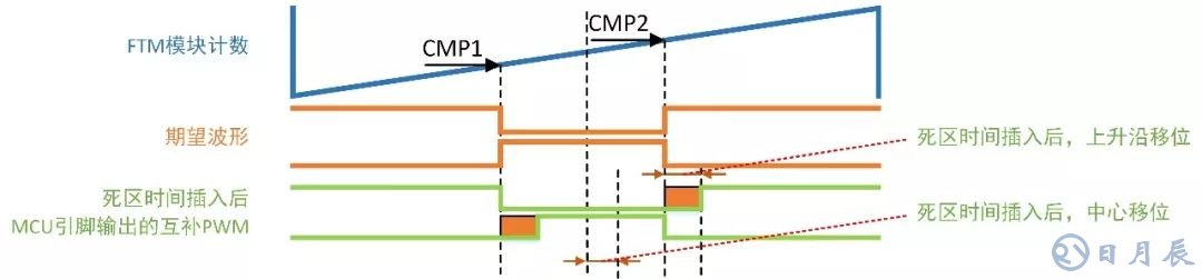 在所需的PWM波形插入死區(qū)時間之后,我們得到的是PWM中點和上升沿都向右移動。因此,在FOC控制算法計算出適當?shù)腜WM之后,我們立即開始看到第一個延遲,即死區(qū)時間。