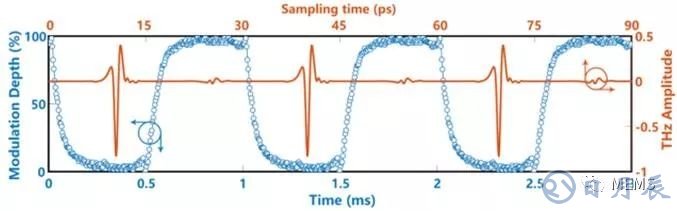 對1kHz方波電信號調(diào)制太赫茲時域波形(紅色)和調(diào)制深度響應(yīng)(藍(lán)色)對速度的要求調(diào)制的上升時間約為1ms,因此很容易實現(xiàn)1kHz的調(diào)制頻率。不過,如果可以犧牲調(diào)制深度,也可以達(dá)到高達(dá)10kHz的頻率。雖然其他固態(tài)太赫茲調(diào)制器工作在大約2.4MHz的較高頻率段,也可以進(jìn)一些小調(diào)整提高該器件的調(diào)制頻率。目前受限于金接觸層之間的電阻和電容,通過將尺寸減小到1mm左右,并用石墨烯代替TiOx,調(diào)制速度與其他器件相當(dāng)。香港中文大學(xué)材料科技研究中心主任許建斌解釋說,“這個裝置的另一個好處是可以被改造成現(xiàn)有的商用太赫茲光譜儀。”石墨烯控制的布魯斯特角太赫茲調(diào)制器將真正帶我們進(jìn)入太赫茲技術(shù)進(jìn)入現(xiàn)實應(yīng)用的未來。