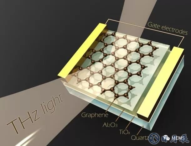 ”該器件通過在石英襯底上進(jìn)行石墨烯、氧化鋁(Al2O3)和氧化鈦(TiOx)單層堆疊實現(xiàn)。一束p偏振太赫茲光束從堆棧中反射出來,當(dāng)達(dá)到布魯斯特角時,反射變?yōu)榱恪L砑右粚邮┰试S了可調(diào)元素的引入。當(dāng)在兩個金接觸點之間的石墨烯上施加電壓時,電導(dǎo)率會發(fā)生變化。這改變了堆疊的布魯斯特角,因此對于給定的入射角,反射的太赫茲可以通過控制電壓而“接通或斷開”。