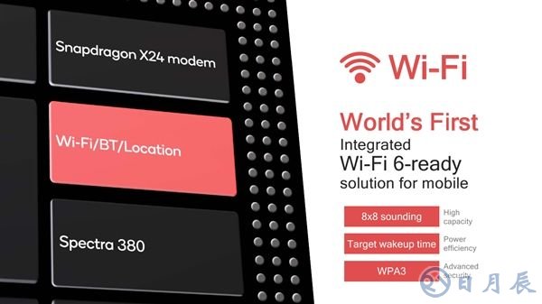 Wi-Fi方面,驍龍855是全球第一個(gè)為支持Wi-Fi 6做好了準(zhǔn)備的移動(dòng)平臺(tái),也就是802.11ax標(biāo)準(zhǔn),將在明年正式推出,支持8×8探測(cè)機(jī)制(效率比現(xiàn)在的4×4提升2倍),目標(biāo)喚醒時(shí)間(Target Wakeup Time)的能效比提升67%,同時(shí)支持最新的WPA3安全標(biāo)準(zhǔn)。