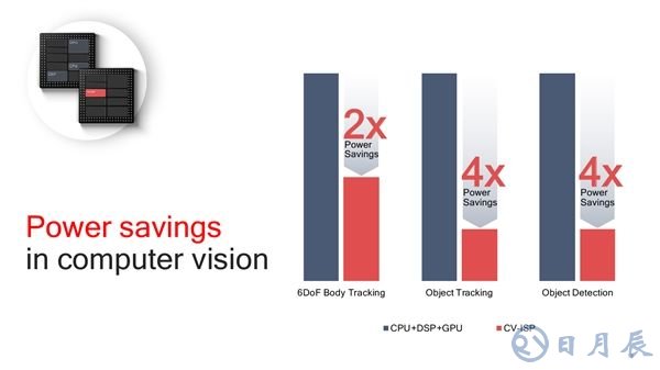 而在功耗方面,高通宣稱(chēng)CV-ISP方案相比傳統(tǒng)的CPU+GPU+DSP方案可以在人體追蹤時(shí)降低一半的功耗,物體追蹤和物體檢測(cè)時(shí)的功耗則只有五分之一,拍攝4K視頻時(shí)功耗也能降低到四分之一。